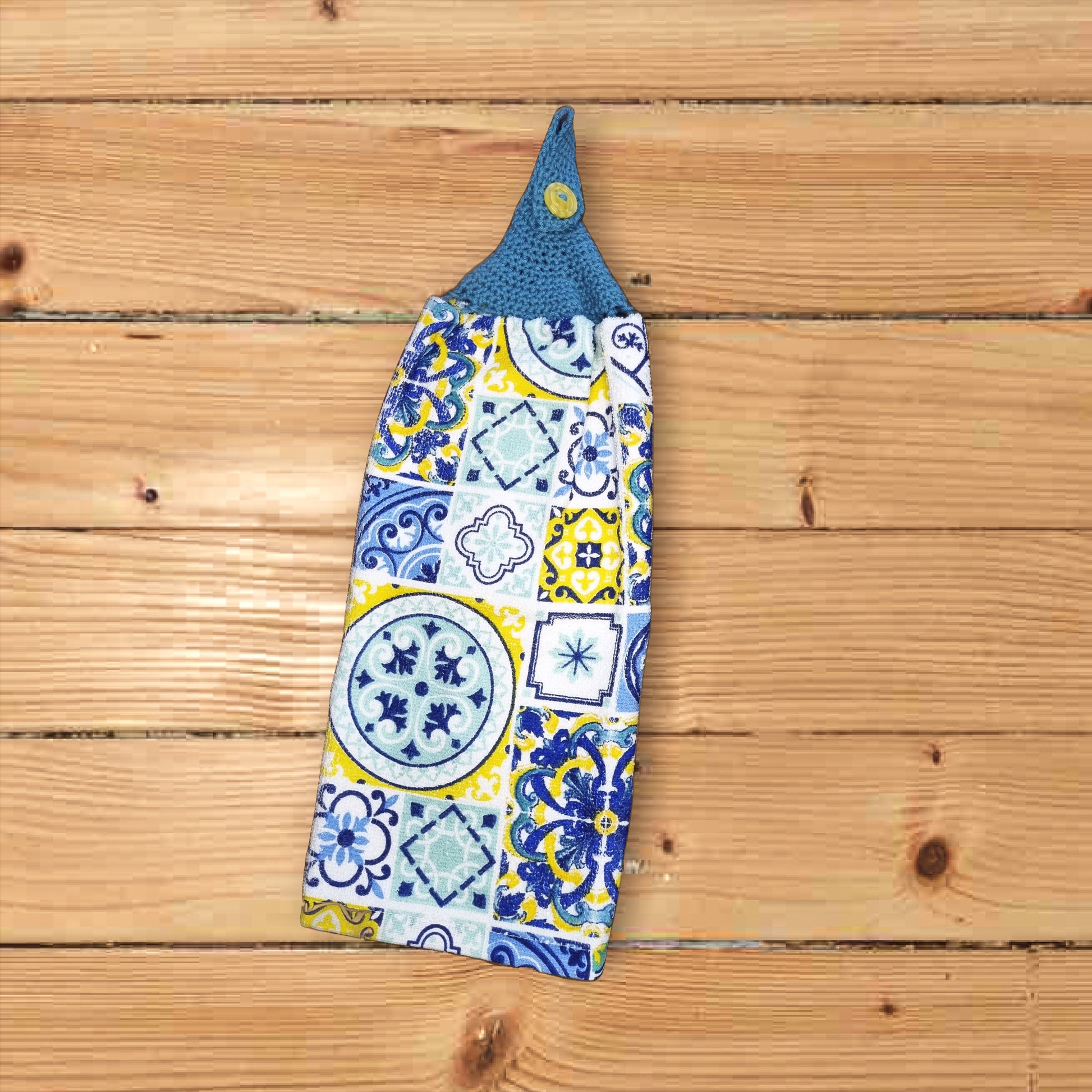 Hand crochet hanging top hand towel. Double thickness.