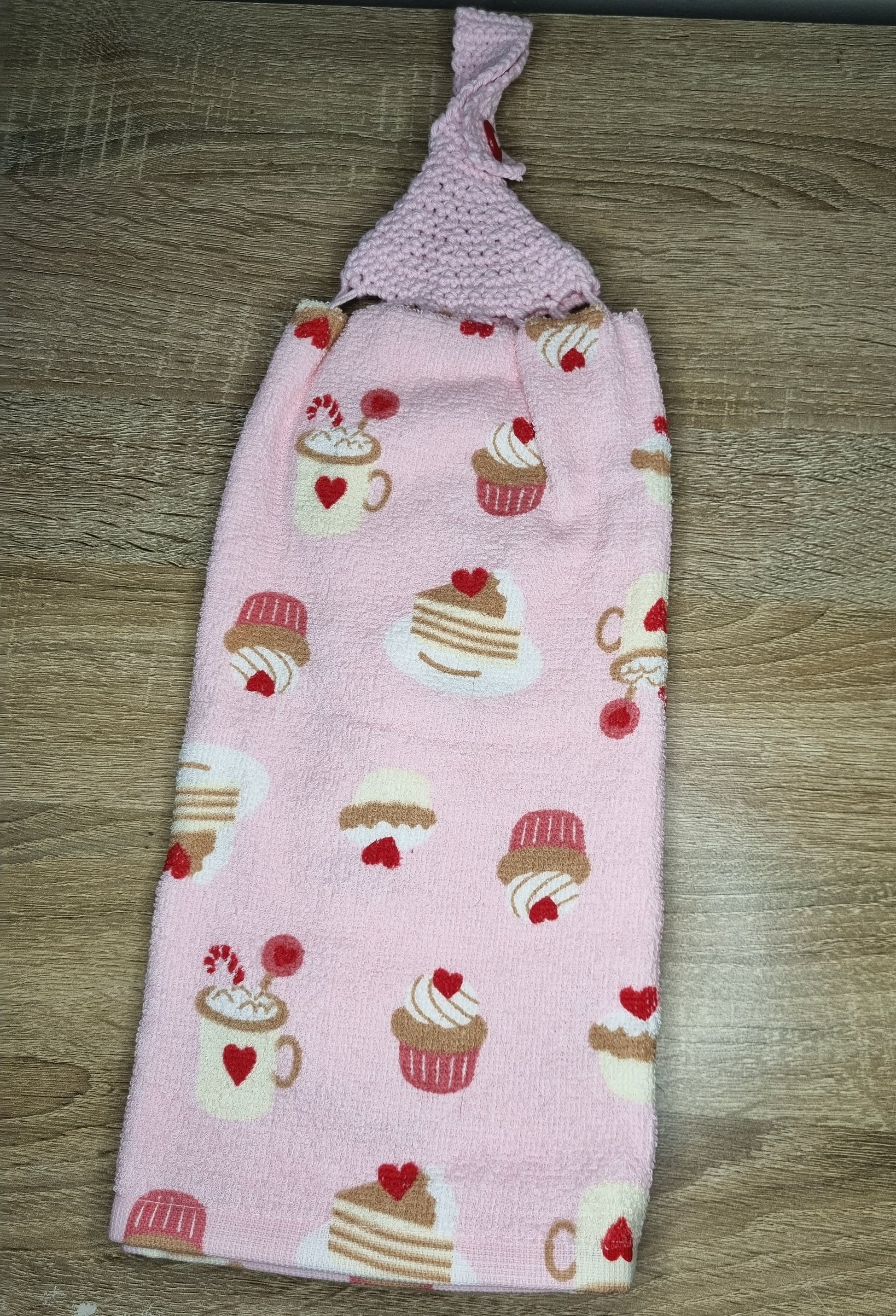 Hand crochet hanging top on a Hand Towel. Towel is double.